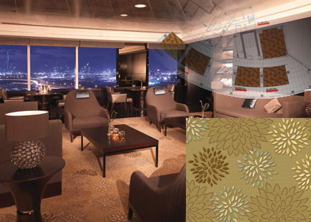 Premium nylon, machine tufted broadloom is made and dyed. Dye injection allows for design detail and expansive repeats perfect for ballrooms, casinos and exhibit halls. Design can be formatted to create corridor runners and rugs of any size to fit any space requirement. Minimum yardage is required.